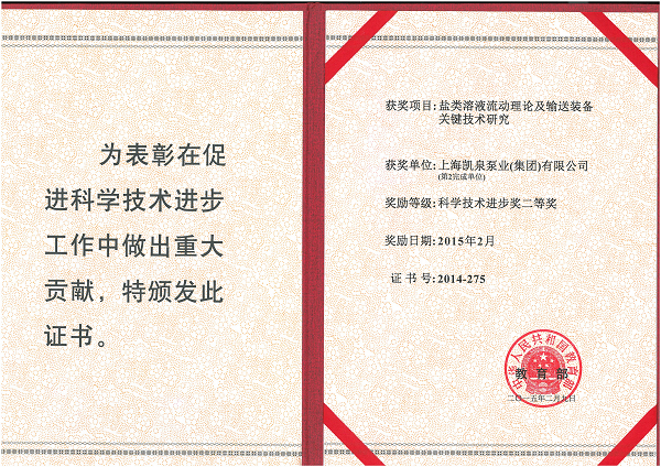集團化工環(huán)保泵高效高穩(wěn)定性設(shè)計關(guān)鍵技術(shù)研究及工程應(yīng)用榮獲“全國商業(yè)科技進(jìn)步二等獎”