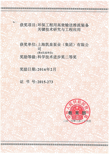 集團環(huán)保工程用高效輸送推流裝備關(guān)鍵技術(shù)研究與工程應(yīng)用榮獲國家教育部頒發(fā)的“科學(xué)技術(shù)進(jìn)步二等獎”