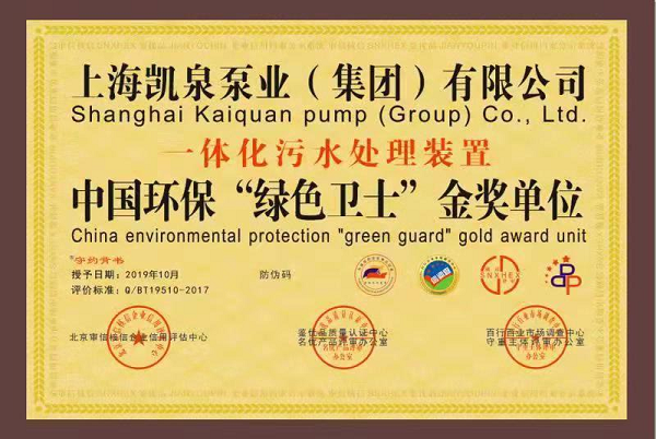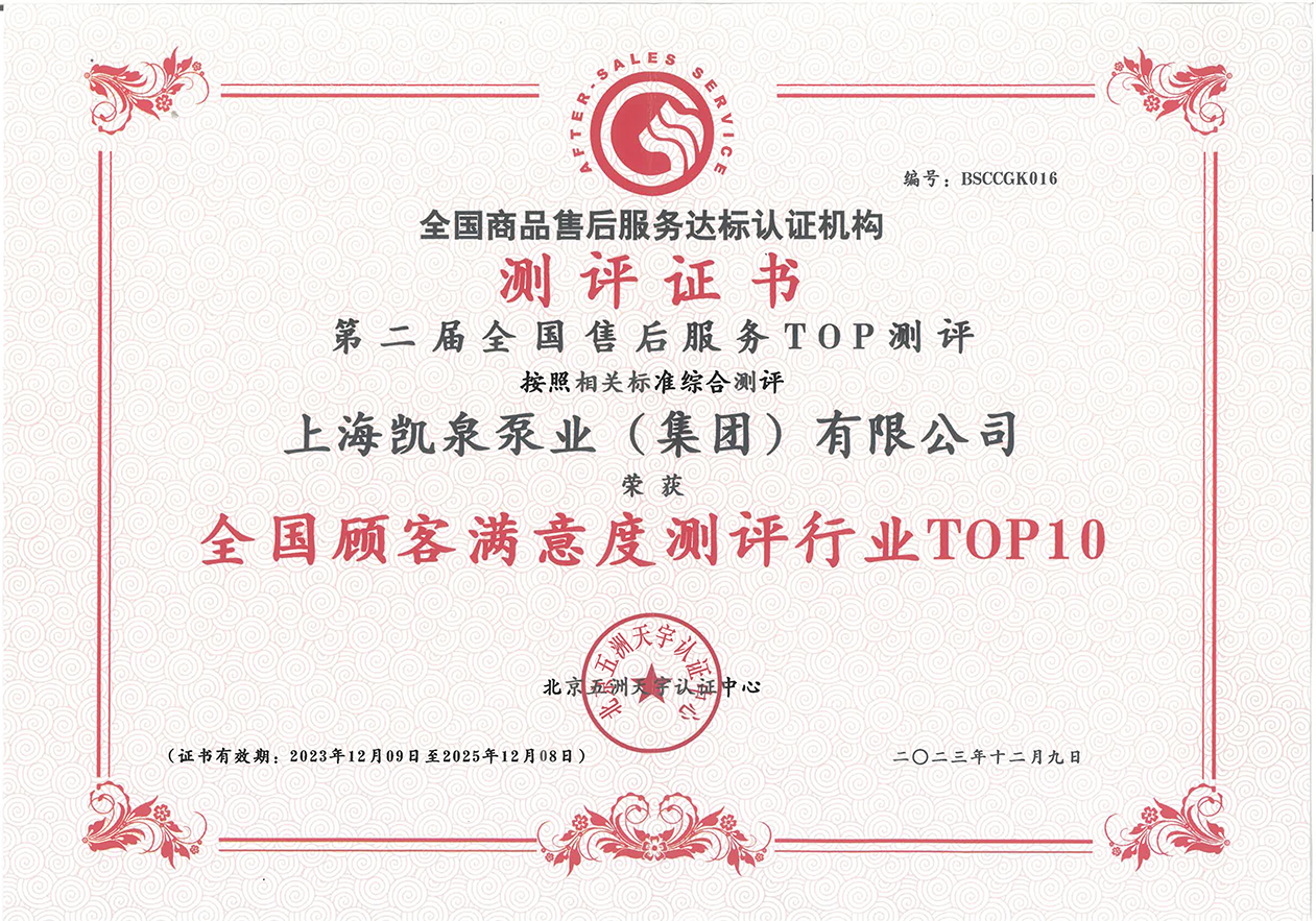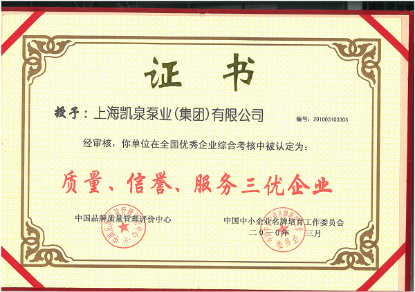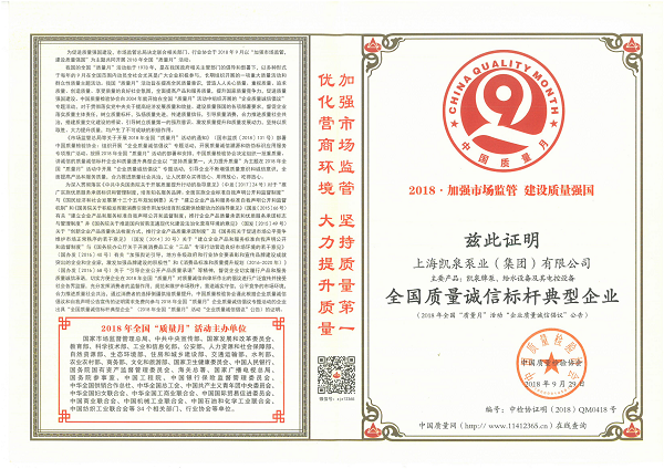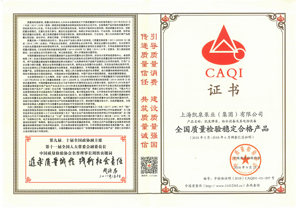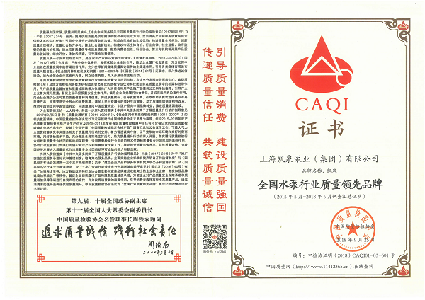 凱泉品牌被評為“全國水泵行業(yè)質(zhì)量領(lǐng)先品牌”