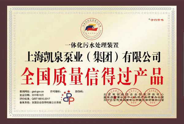 集團一體化污水處理裝置被評為“全國質(zhì)量信得過產(chǎn)品”