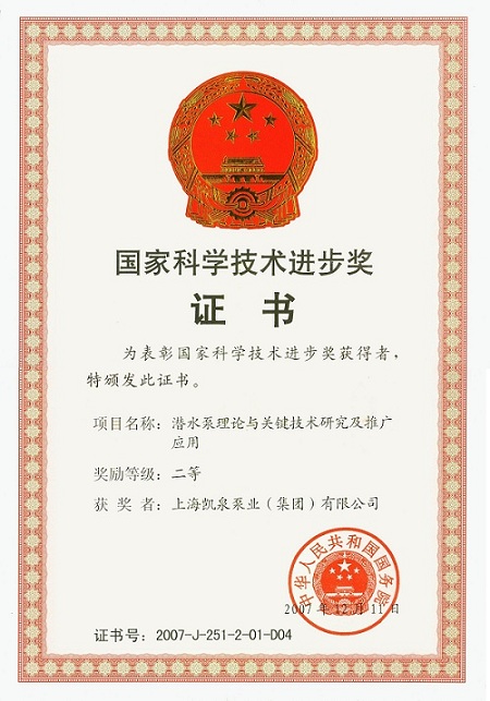 集團潛水泵理論與關(guān)鍵技術(shù)研究及推廣應(yīng)用榮獲“國家科學(xué)技術(shù)進(jìn)步獎二等獎”