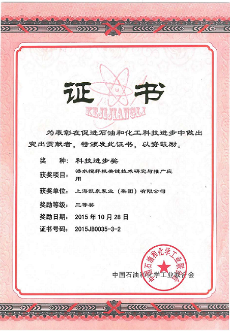 集團潛水?dāng)嚢铏C關(guān)鍵研究與推廣應(yīng)用榮獲“科學(xué)進(jìn)步三等獎”