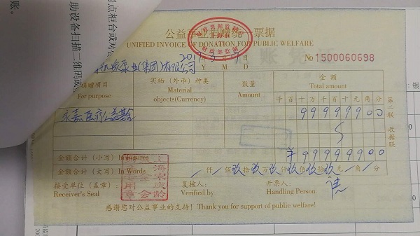 集團捐贈宋慶齡基金會999999元