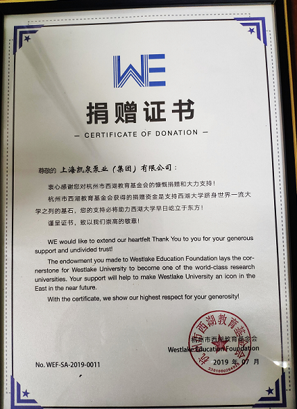 集團捐贈杭州西湖教育基金會200萬元