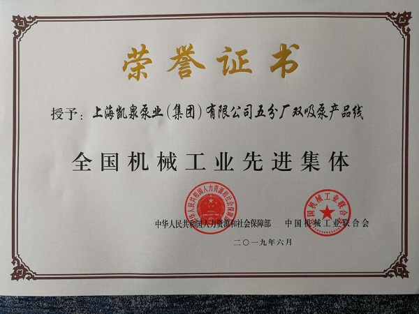 集團雙吸泵產(chǎn)品線被評為“全國機械工業(yè)先進(jìn)集體”