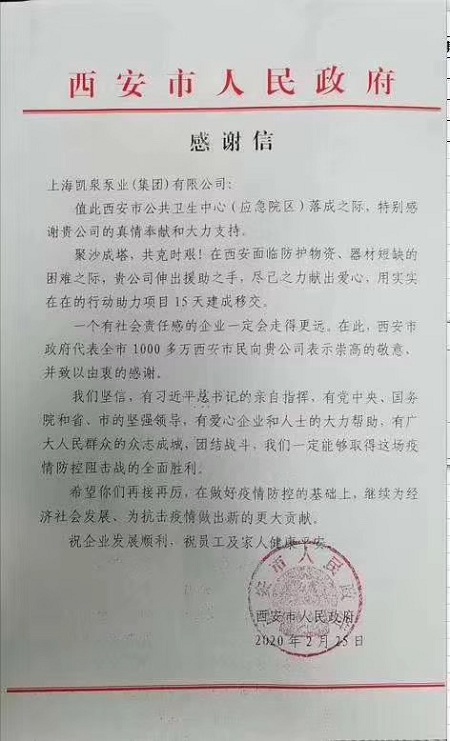 集團收到西安人民政府感謝信