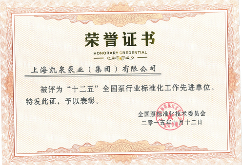 集團被評為“全國泵行業(yè)標(biāo)準(zhǔn)化工作先進(jìn)單位”
