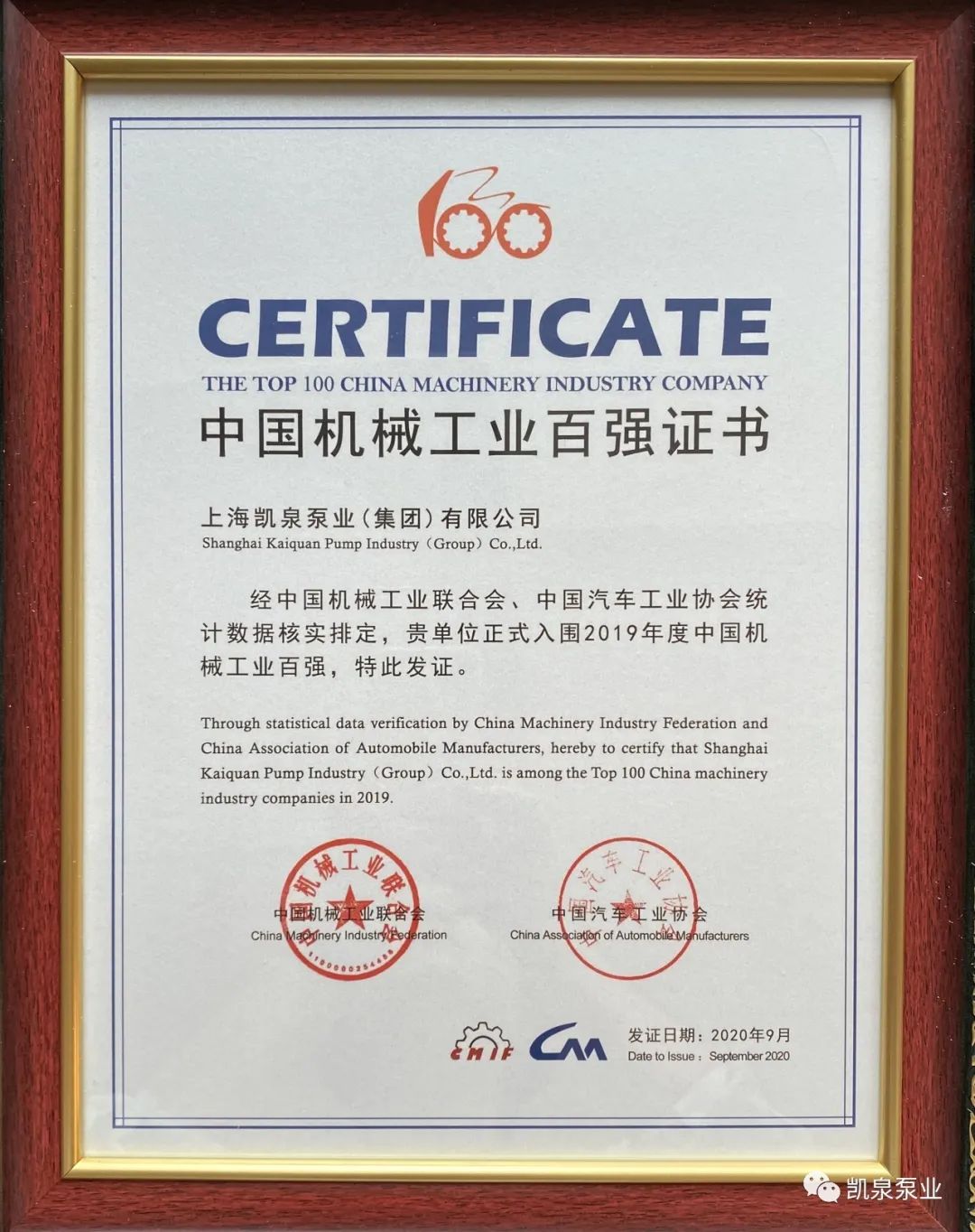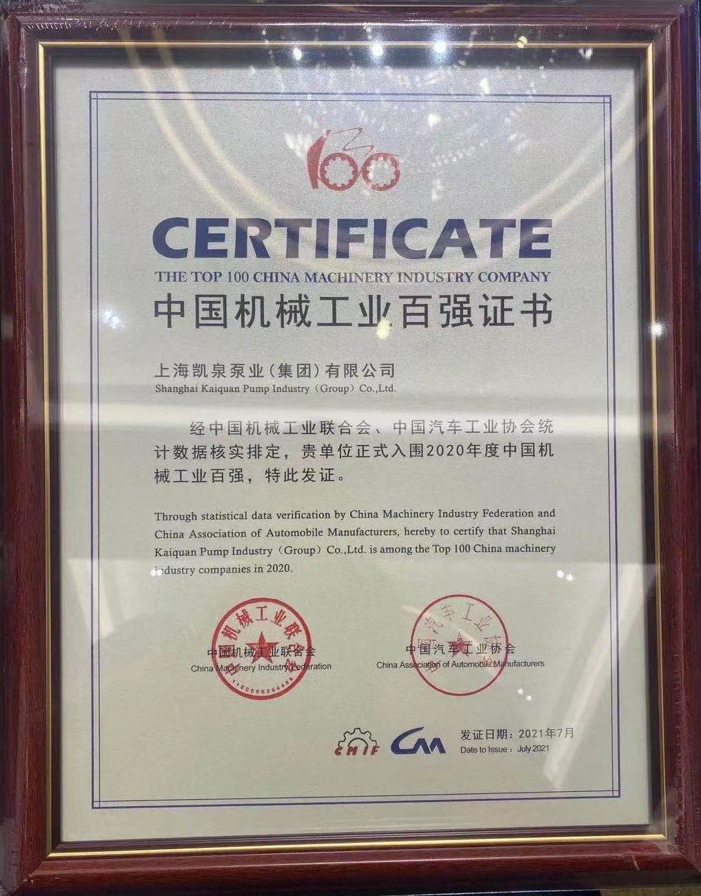 集團榮登2020年中國機械工業(yè)百強企業(yè)榜單