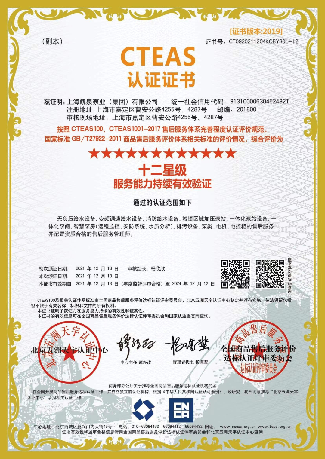 集團通過CTEAS售后服務(wù)體系十二星認(rèn)證